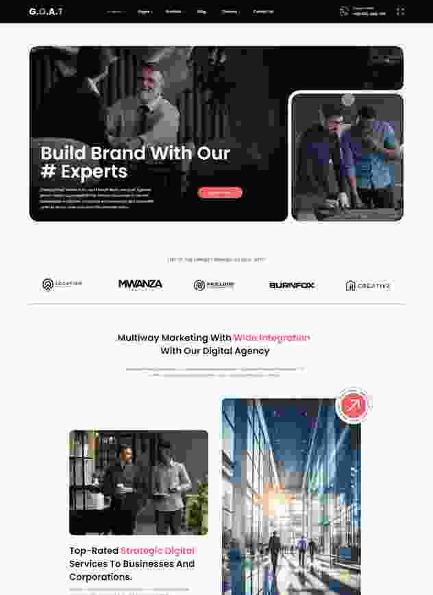 G.O.A.T Creative Business Consultant WordPress Website it is a perfect way to showcase the possibilities of your software visually on your web platform. This design is an excellent solution for startups, cloud hosting, application, event, business, personal portfolio, services,